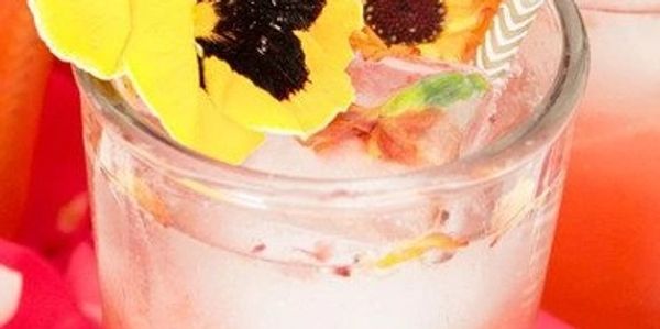 Fresh mint, Lime squeeze, and Edible Pansy Flower Garnish